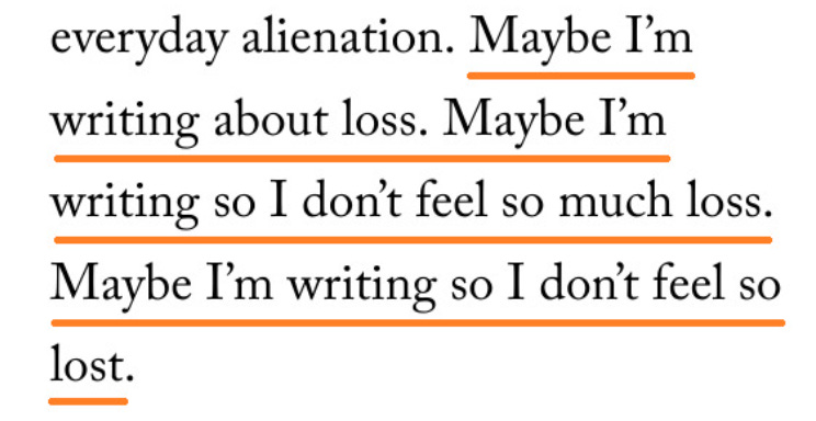 But what’s more human than our habit of personifying every little thing we encounter? And besides, isn’t grief simply found in the absence of another? Isn’t grief simply the struggle to put that same, habitual love and care you gave freely to one thing into anything else? Because you realize that nothing else will respond in the same way to you—that love does not illicit the same tactile response all across the board. So isn’t grief the acknowledgement of the loss of that agreement between two things? The loss of that unique language which only exists between you and them?